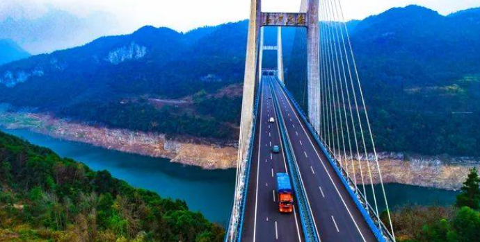 道真至瓮安高速公路乌江大桥是贵州省首座混合式钢混叠合梁斜拉桥,长617米、宽28米、高260米、主桥跨径360米。大桥于2013年开工建设,2015年12月正式通车,桥梁跨越乌江后紧接鹰嘴岩隧道。